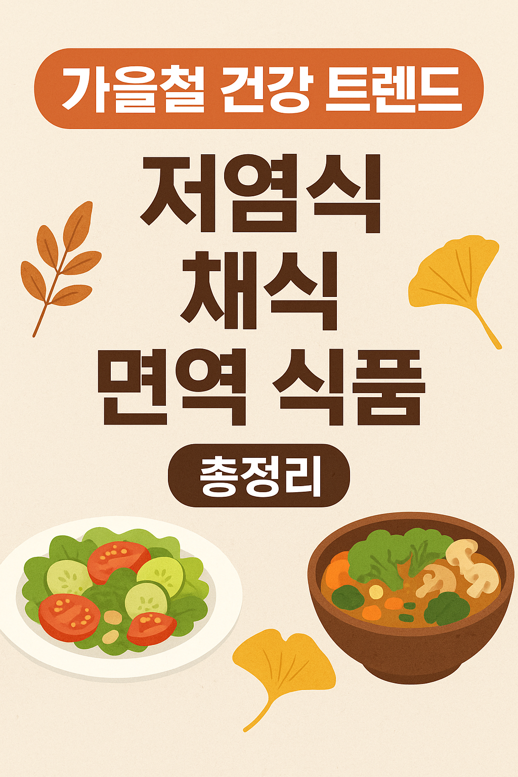 최근 식품·의료·헬스케어 트렌드를 살펴보면 “저염식”, “채식”, “면역 강화 식품”이 꾸준히 언급되며 가을철 건강의 핵심 키워드로 자리 잡고 있습니다. 짜게 먹는 습관을 줄이고, 가을 제철 식재료를 바탕으로 한 채소 중심의 식단이 많은 사람들에게 선택받고 있습니다. 이는 단순한 유행이 아니라, 만성질환 예방과 면역력 향상을 위한 과학적인 자료가 뒷받침된 생활 습관입니다. 본문에서는 이 세 가지 식단 트렌드를 하나씩 살펴보고, 실제 생활에 적용할 수 있는 방법까지 상세히 소개합니다.